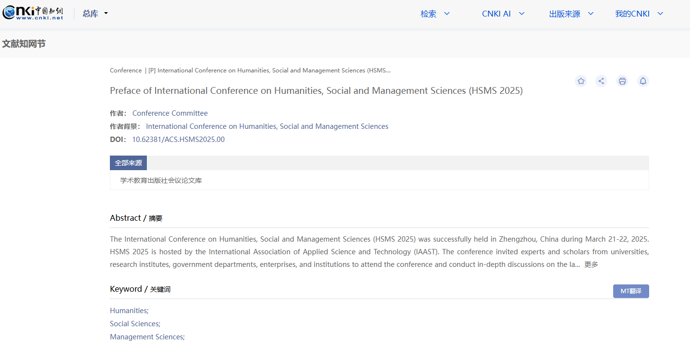HSMS 2025 Proceedings have been indexed by CNKI! →May 22, 2025